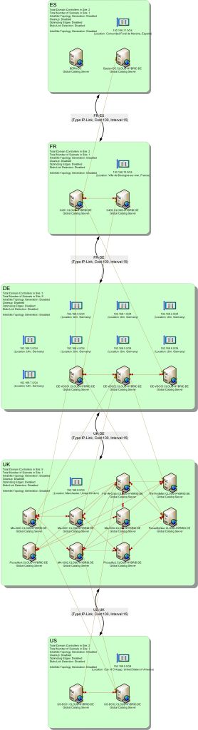 Die Active Directory Topologie besteht im wesentlichen aus den Sites, welche durch Site-Links miteinander verbunden sind.