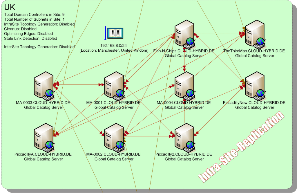 Die Intra-Site-Replikation betrifft den Datenabgleich der Active Directory Datenbank innerhalb einer Active Directory Site.