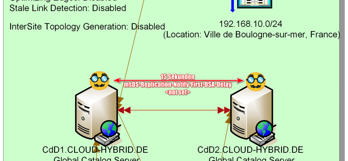 - change notification: die Bridge-Head-Server schicken sich über die Site-Links hinweg Änderungsbenachrichtigungen. Dadurch verkürzt sich das Intervall von 15 Minuten auf 1 Sekunde!